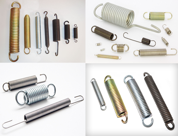 Molas de tração com diâmetros de arame de 0,20 a 16,00 mm com matéria prima para fabricação de molas de baixo, médio e alto teor de carbono, inoxidáveis, aços ligados e outros.